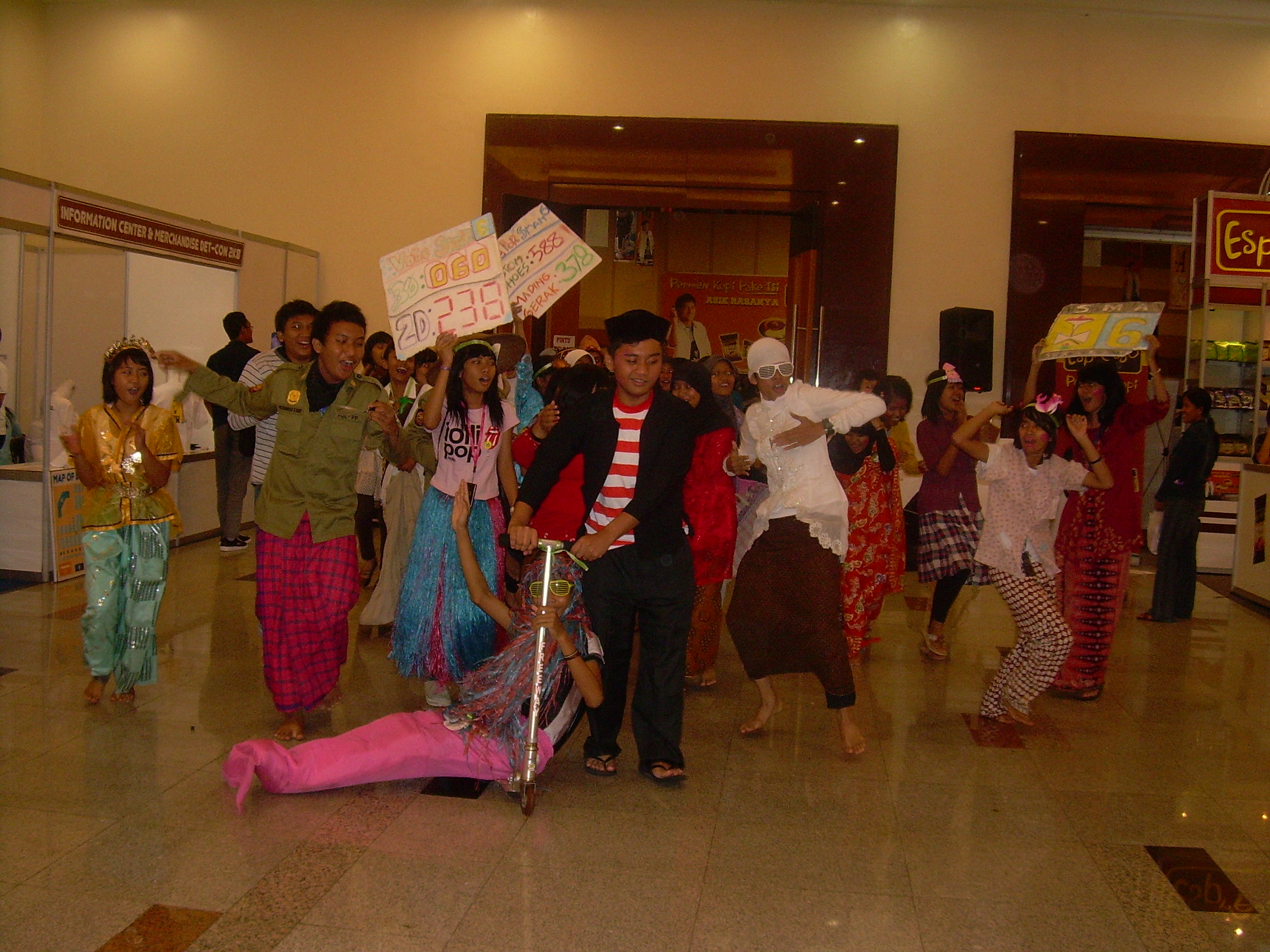 Everyday in our AEC booth, we can see the students presenting their schools in variety of ways. They dressed up, wearing unique costumes or making noises throughout the hallway. This action known as Mob Movement. It is a movement organized by numbers of people to do something in order to gain their goals and it could be negative or positive. In Det-Con event, the goal is positive, i.e. to win some trophies and predicates for their schools.