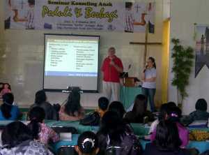 It was an annual seminar with Rev. David Goodwin from Kidsreach Australia. The seminar was about how to deliver counseling process from children in crisis or trauma for 88 counselors from all over Indonesia and Malaysia (Sabah). This year I got the honour to be the interpreter for David Goodwin.