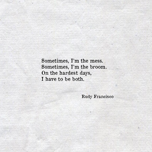 And to end this, I want to share one quote from @rudyfransisco. A poet that stole my attention, except for today. I would say that on hard days, I won’t be mess or the broom. I would just watch and be quiet.